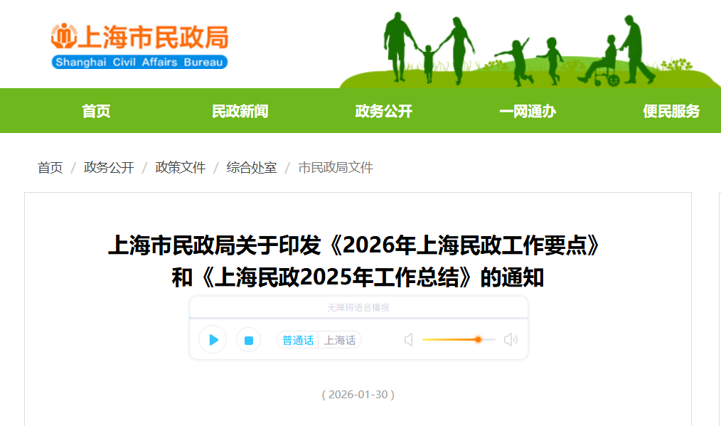 2026年是实施“十五五”规划的开局之年。上海民政将以习近平新时代中国特色社会主义思想为指导,全面贯彻落实党的二十大和二十届历次全会精神,深入学习贯彻习近平总书记对民政工作的重要指示精神和关于民政工作的重要论述,稳中求进,提质增效,着力推进实施积极应对人口老龄化国家战略,显著提升社会救助、社会福利、社会事务、社会治理的工作水平,实现“十五五”良好开局。